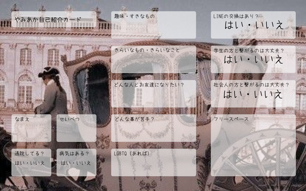 やみあか自己紹介カードを作る事が出来ます。