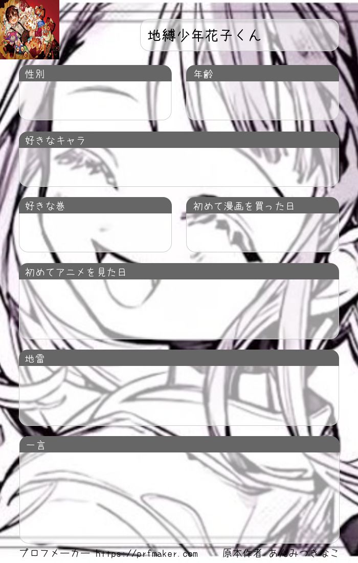 地縛少年花子くんの自己紹介カードです