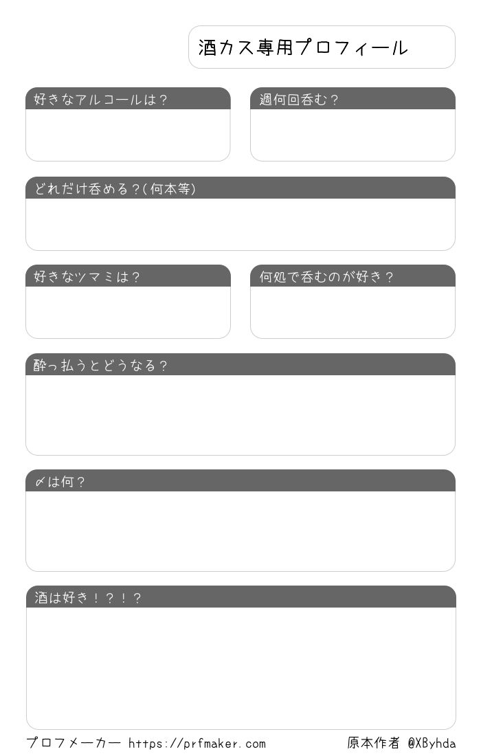 酒カスプロフィール帳です。酒カスは全員書け。