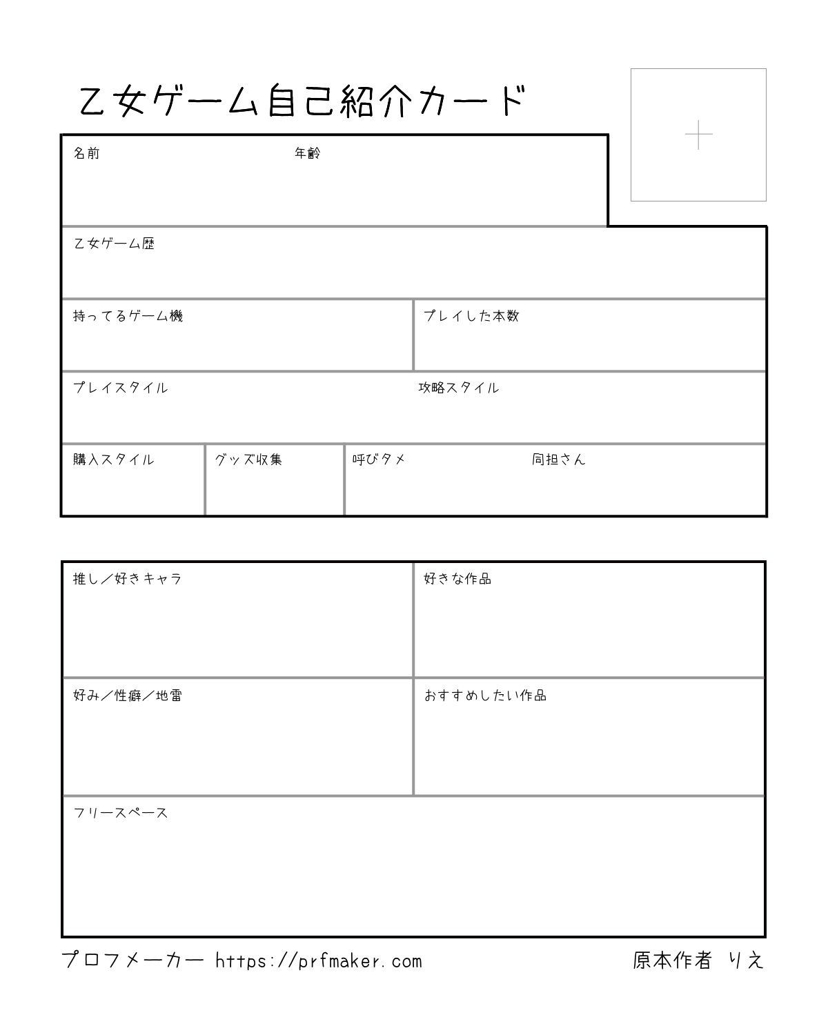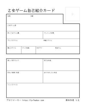 乙女ゲーム自己紹介カード