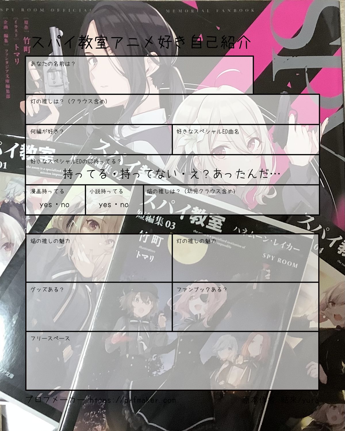 スパイ教室アニメ好き自己紹介を作る事が出来ます。