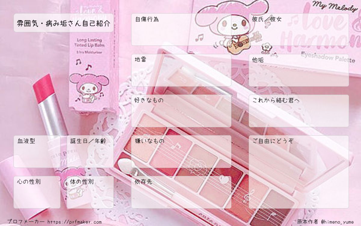 雰囲気・病み垢さん自己紹介を作る事が出来ます。