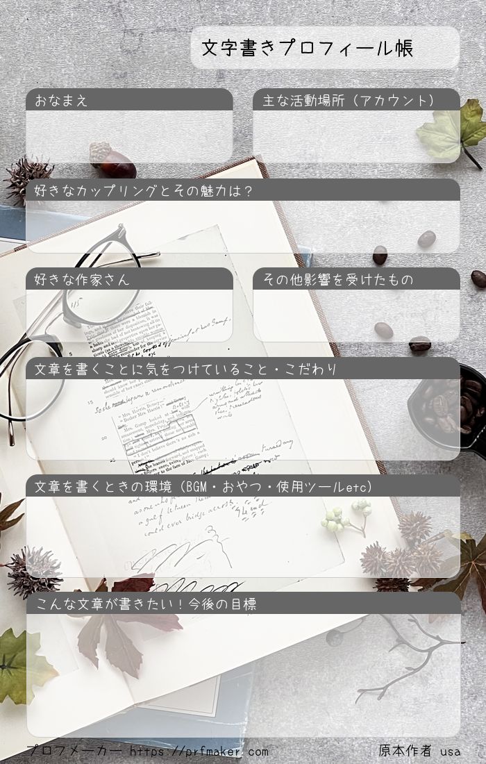 文字書きさん用プロフィール帳
