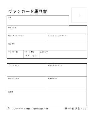 ヴァンガードファイター向け。 ブシナビ項目追加しました。 他履歴書を参考にしております。何か問題があればご連絡ください。