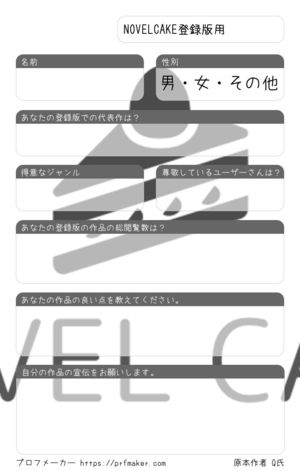NOVELCAKE登録版向け自己紹介カードです。 ご自由にお使いください。