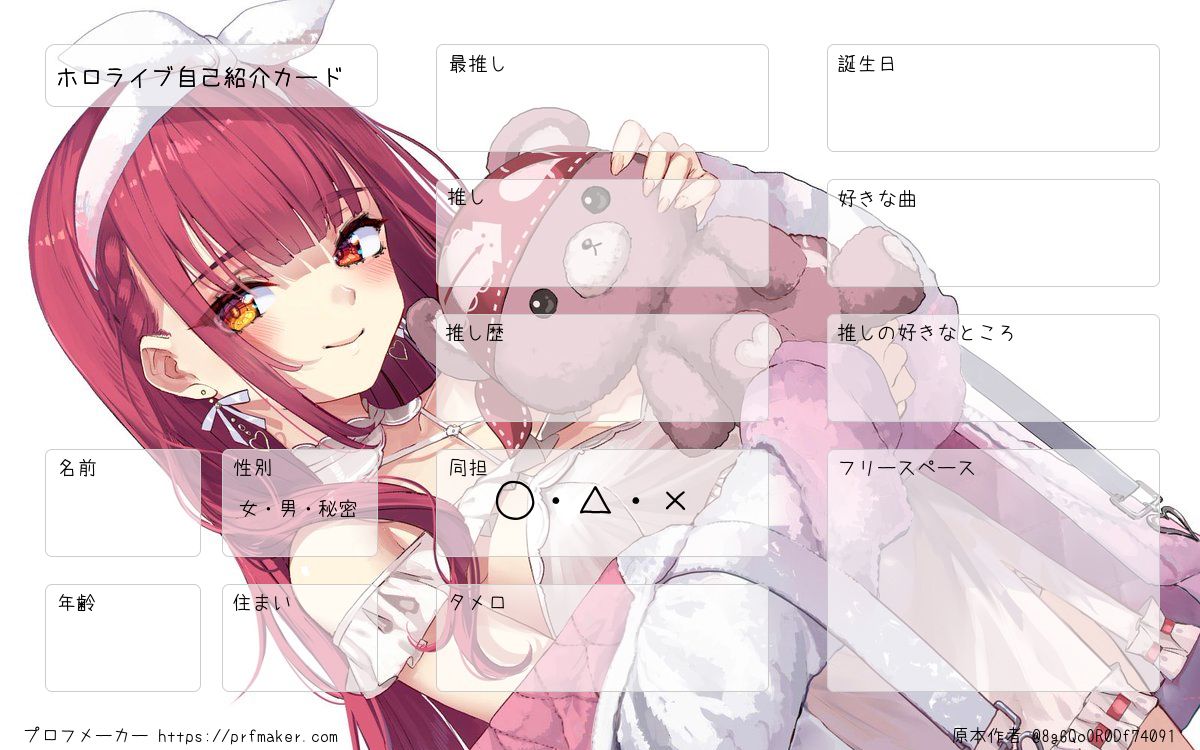 宝鐘マリン最推し、推し人用の自己紹介カード!ぜひ使ってください!