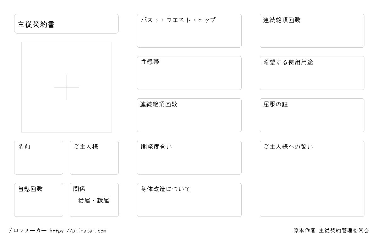 従属・隷属希望者が主従契約を結ぶ際に必要な書類となります。 隷属希望者は別紙:人権喪失届の提出が必要です