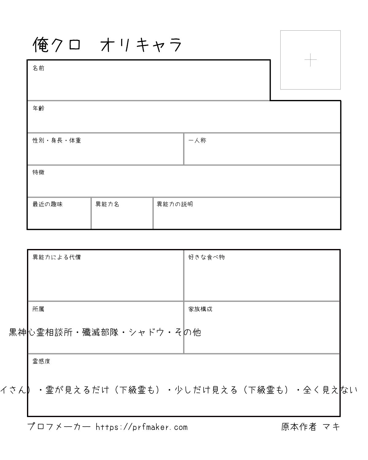 俺クロの世界の自分(オリキャラ)作ってみませんか? 勝手に作ったものですが、使ってくれると嬉しいです。