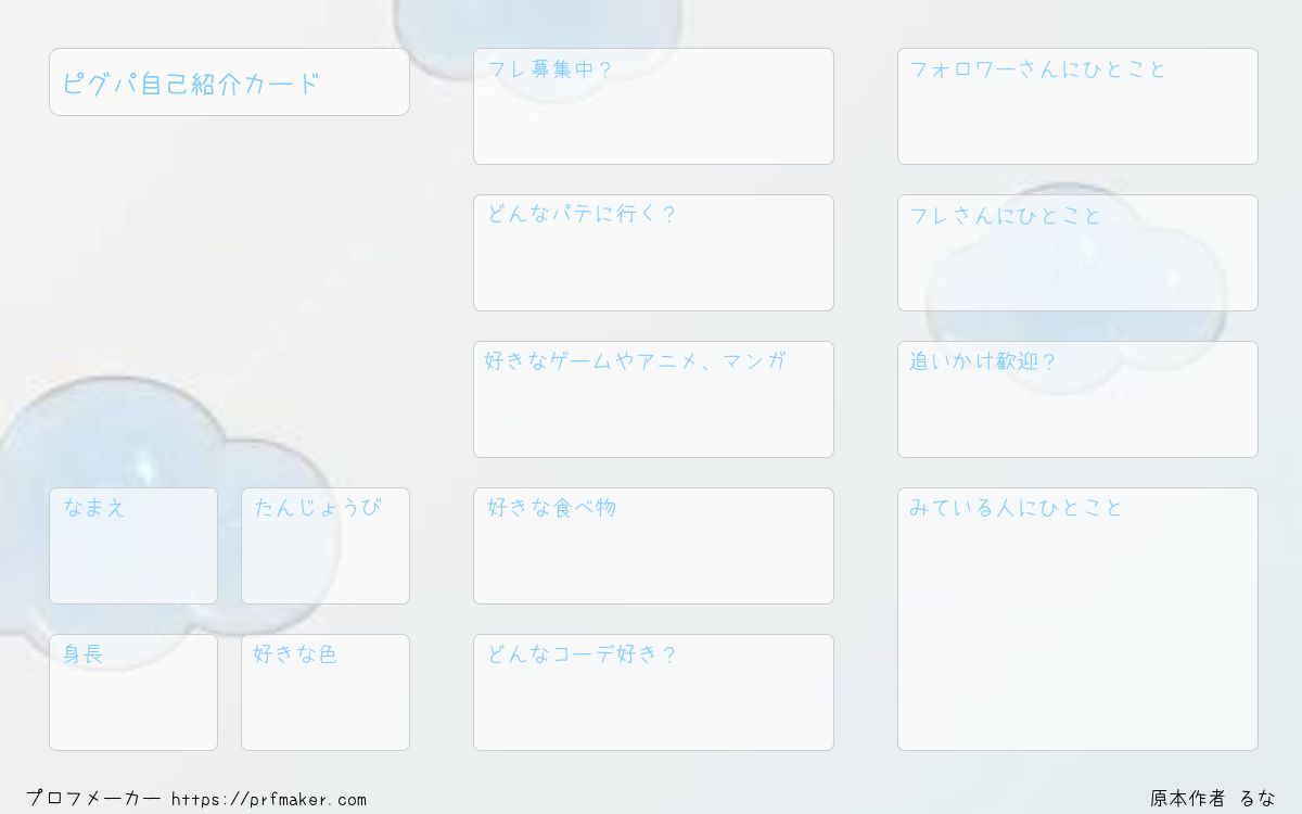 ピグパ専用の自己紹介カードです