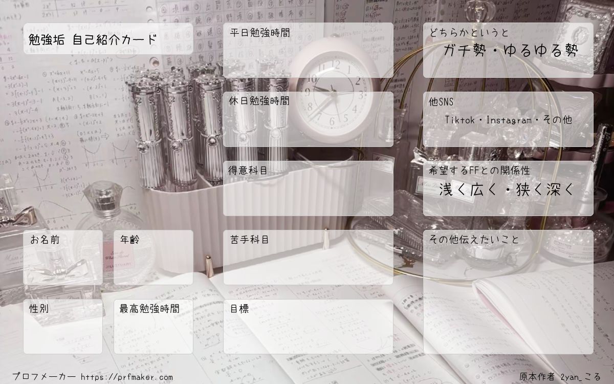 勉強垢 自己紹介カード