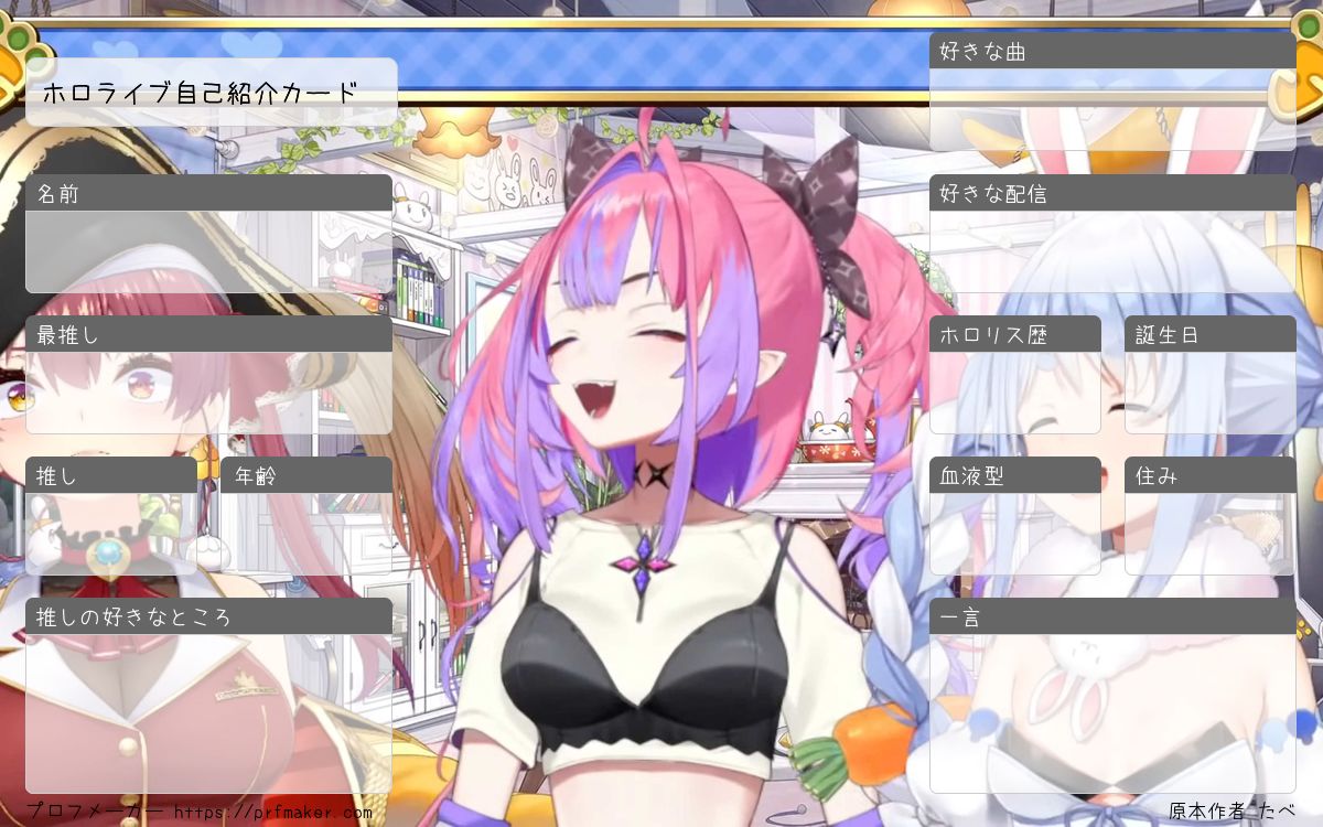 ホロライブ自己紹介カードを作る事が出来ます。