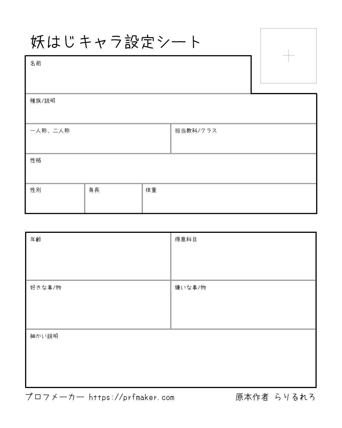 妖はじキャラ設定シートを作る事が出来ます。