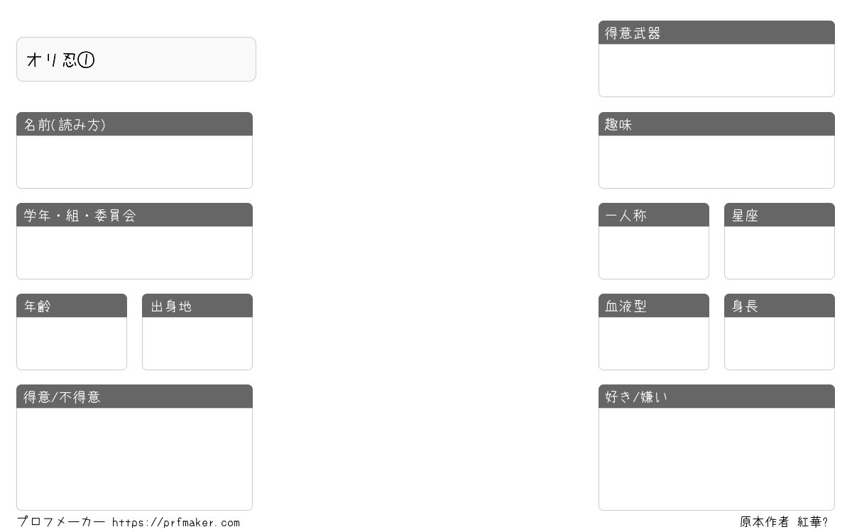 自己作成用です。 忍術学園以外のオリ忍も◯ 元の項目はお化けんぬさんのものです。 使う前に許可を取ってからお使いください。 元となったお化けんぬさんのテンプレ(https://www.pixiv.net/artworks/129751827) ?も合わせてお使いください。