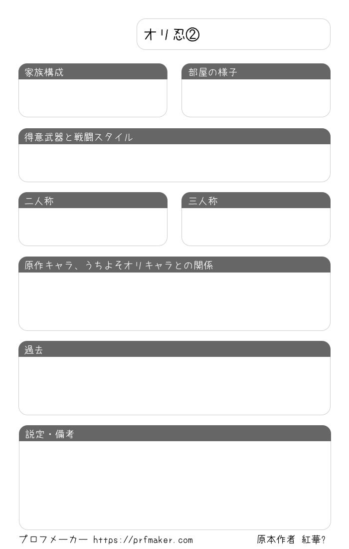 ?の続きです。 使う場合は紅華のオリ忍?のテンプレート説明文を必ずご確認の上ご使用ください。