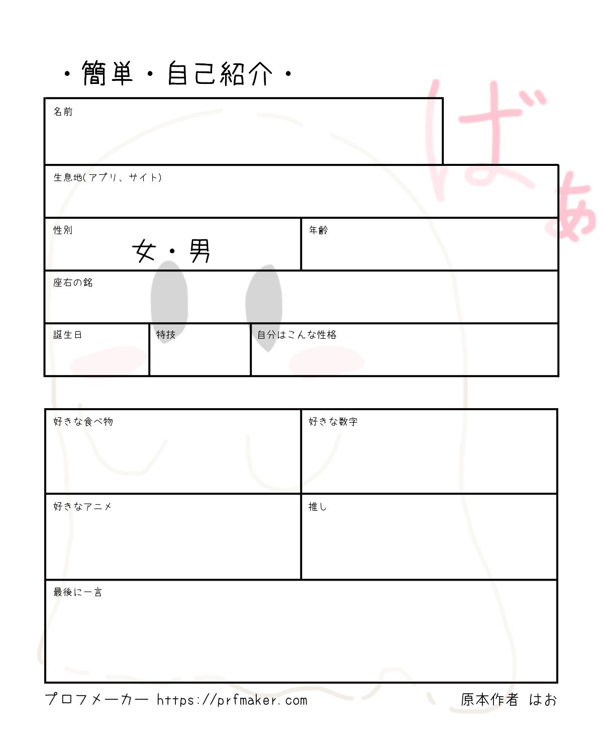 ・簡単・自己紹介・を作る事が出来ます。