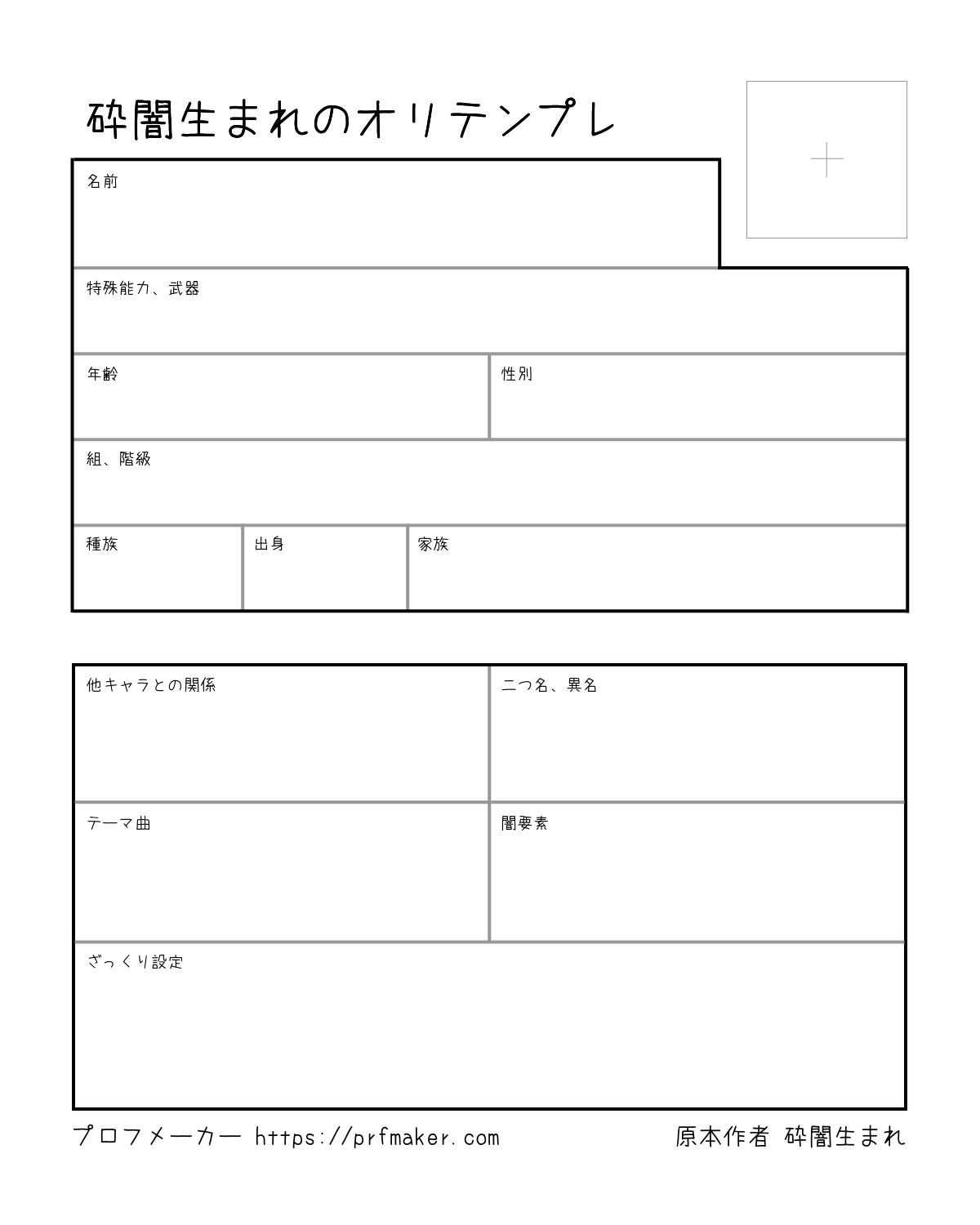 砕闇生まれのオリテンプレを作る事が出来ます。