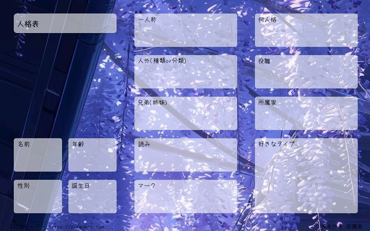 虆鈺家の人格表です。 使用禁止です。