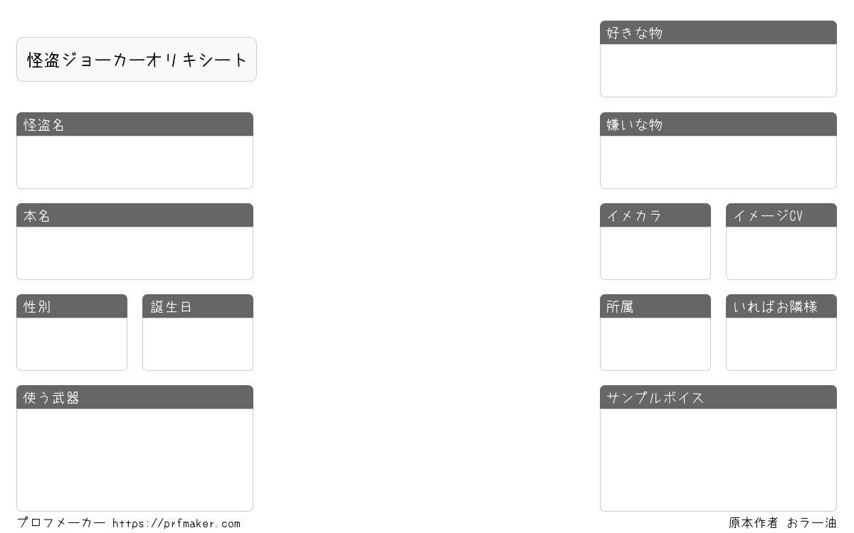 怪盗ジョーカーのオリキャラシート、全くなかったので自分で作りました??