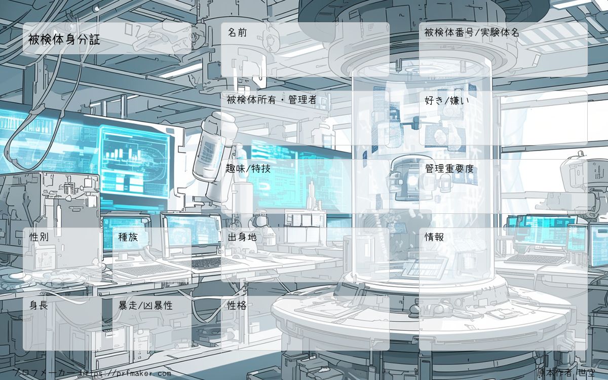 実験や研究の施設といった、 被検体・実験体用の創作キャラ紹介が欲しかったので作成しました! 誰得な物ですが良ければ!