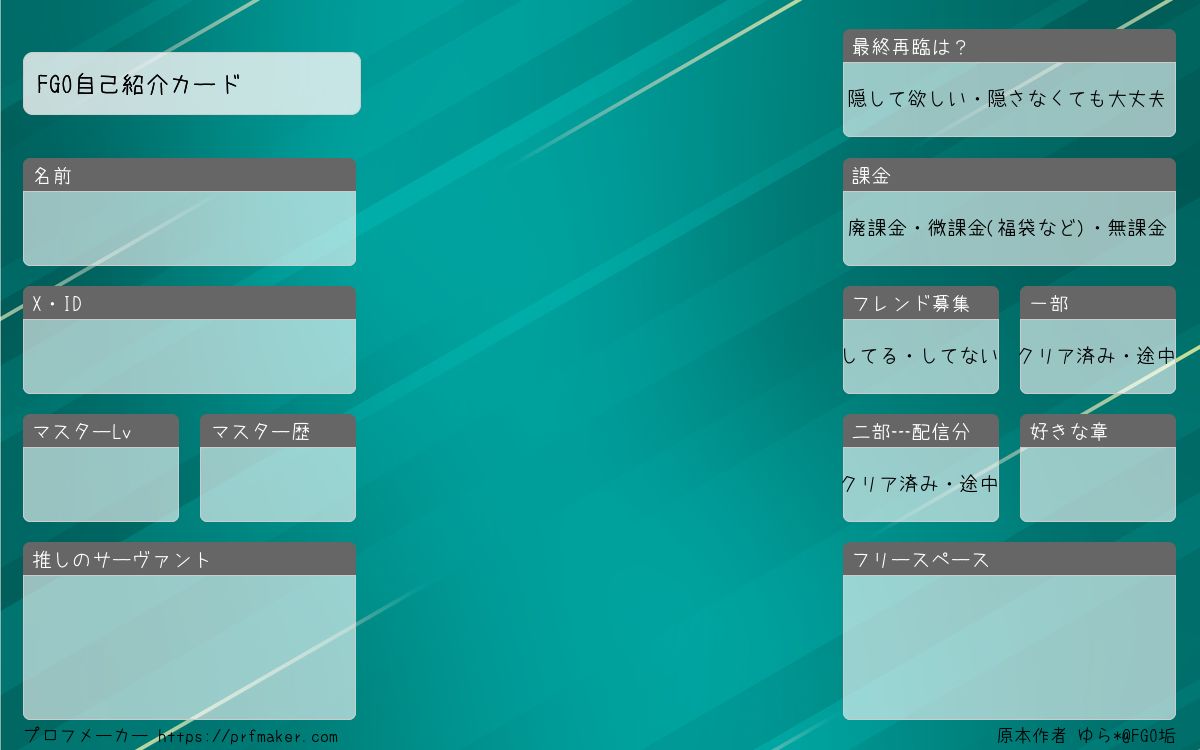 FGOの自己紹介カードが見当たらなかったので作ってみました!良ければお使い下さい(,,? ?,,)ペコリ