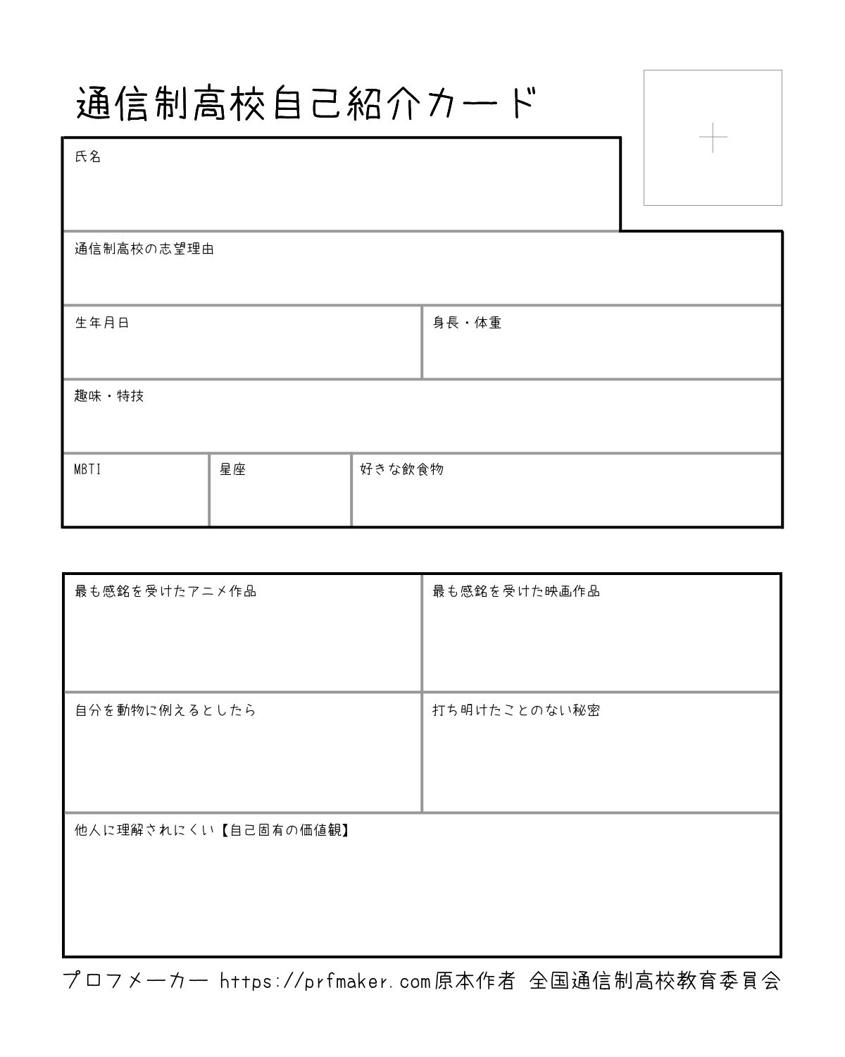 通信制高校自己紹介カード
