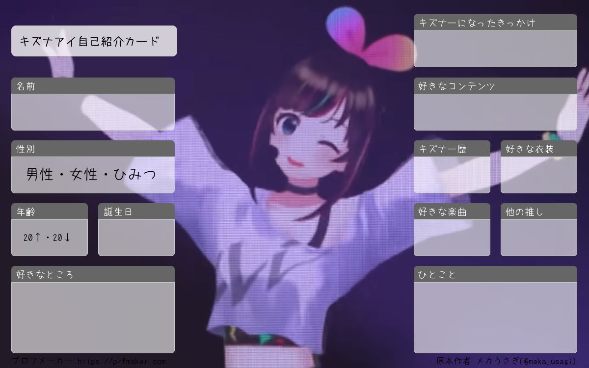キズナアイ自己紹介カードを作る事が出来ます。