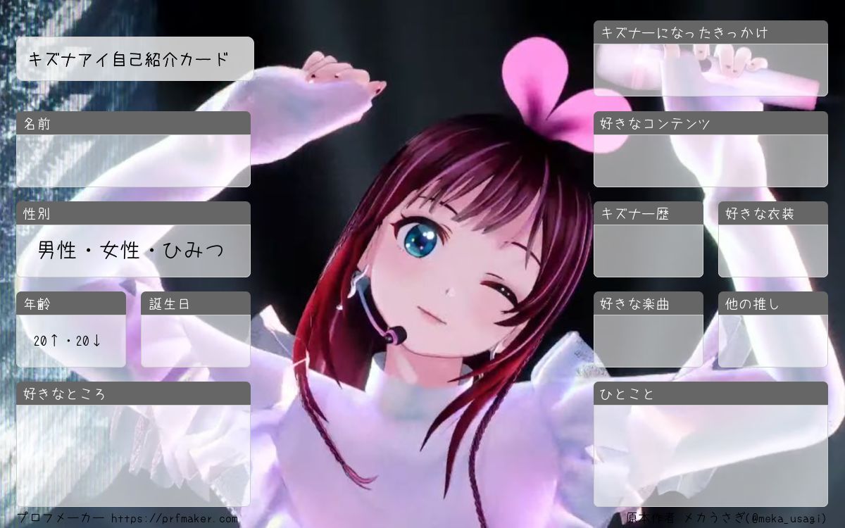 キズナアイ自己紹介カードを作る事が出来ます。