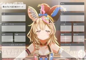 ホロライブ5期生の尾丸ポルカ背景自己紹介カードです
