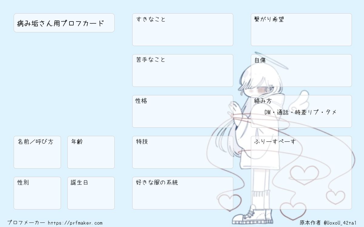 病み垢さん用プロフカードを作る事が出来ます。