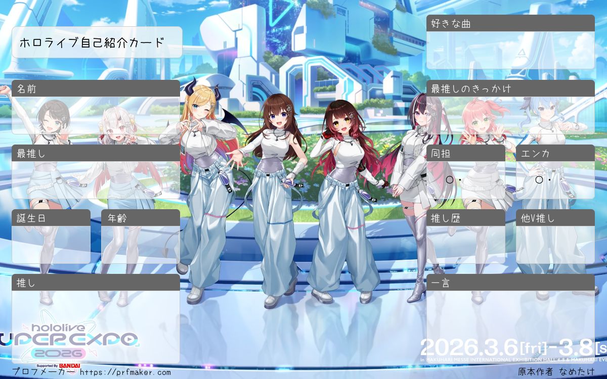 ホロライブ自己紹介カードを作る事が出来ます。