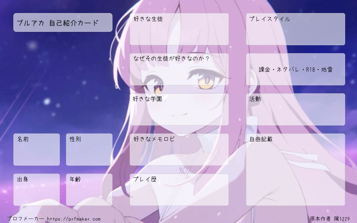 ブルアカ 自己紹介カードを作る事が出来ます。