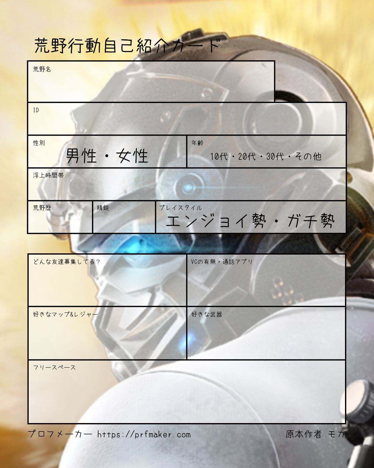荒野行動自己紹介カード
