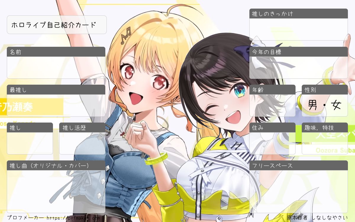 ホロライブ自己紹介カードを作る事が出来ます。