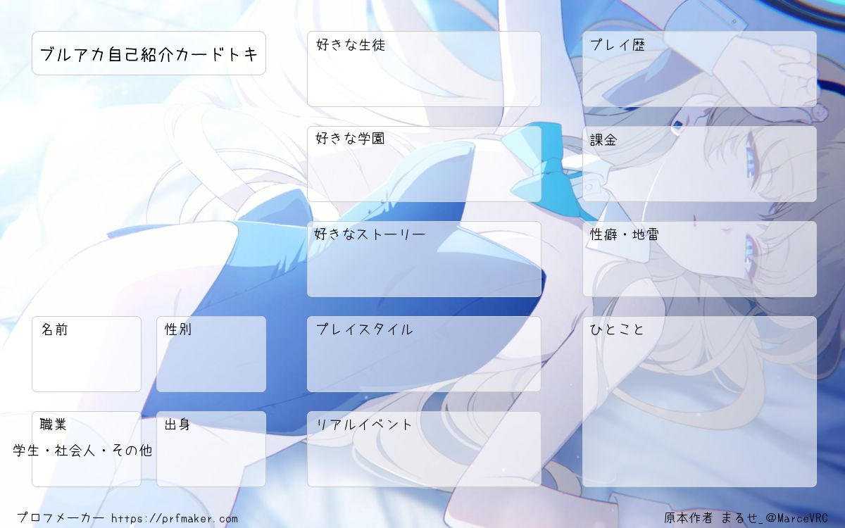 飛鳥馬トキのブルアカ自己紹介カードです。 使ってもらったら感謝です。@MarceVRCをフォローしてくれれば??