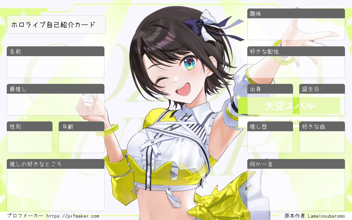 ホロライブ自己紹介カードを作る事が出来ます。