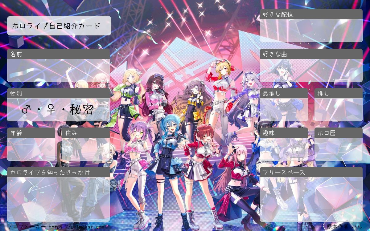 ホロライブ自己紹介カードを作る事が出来ます。