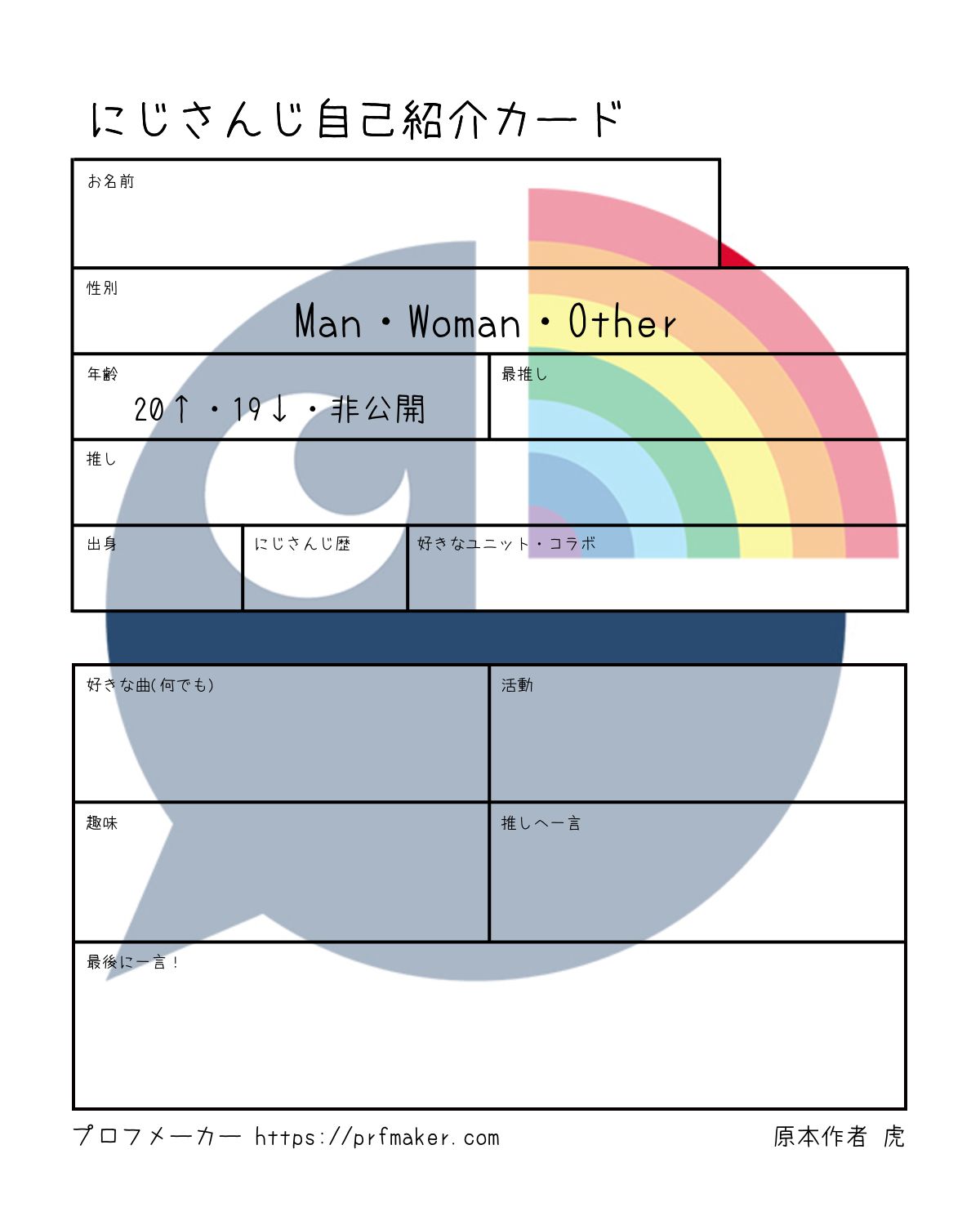 にじさんじ自己紹介カードを作る事が出来ます。