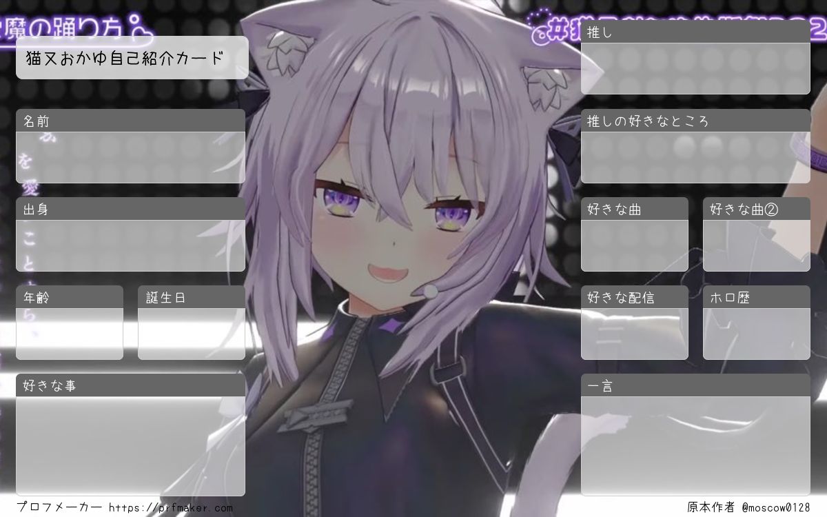 猫又おかゆ自己紹介カードを作る事が出来ます。