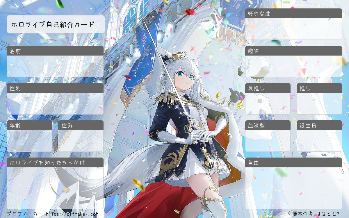 ホロライブ自己紹介カードを作る事が出来ます。