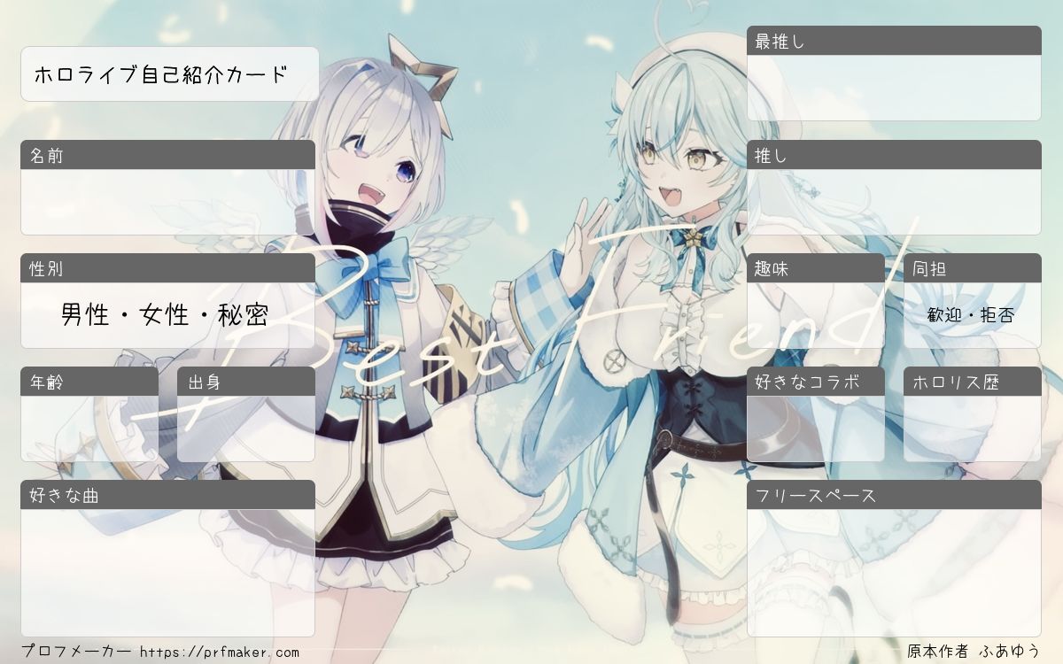 ホロライブ自己紹介カードを作る事が出来ます。