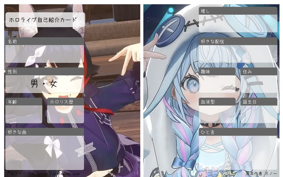 ホロライブ自己紹介カードを作る事が出来ます。
