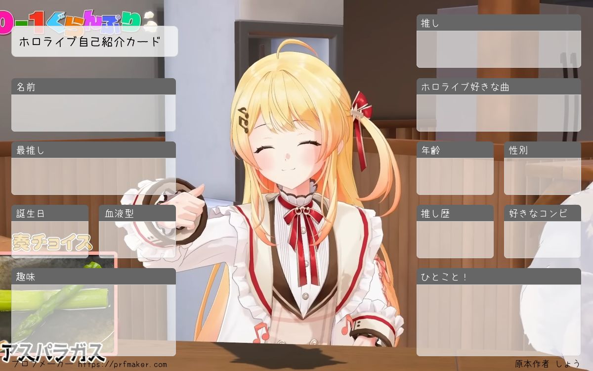 ホロライブ自己紹介カードを作る事が出来ます。