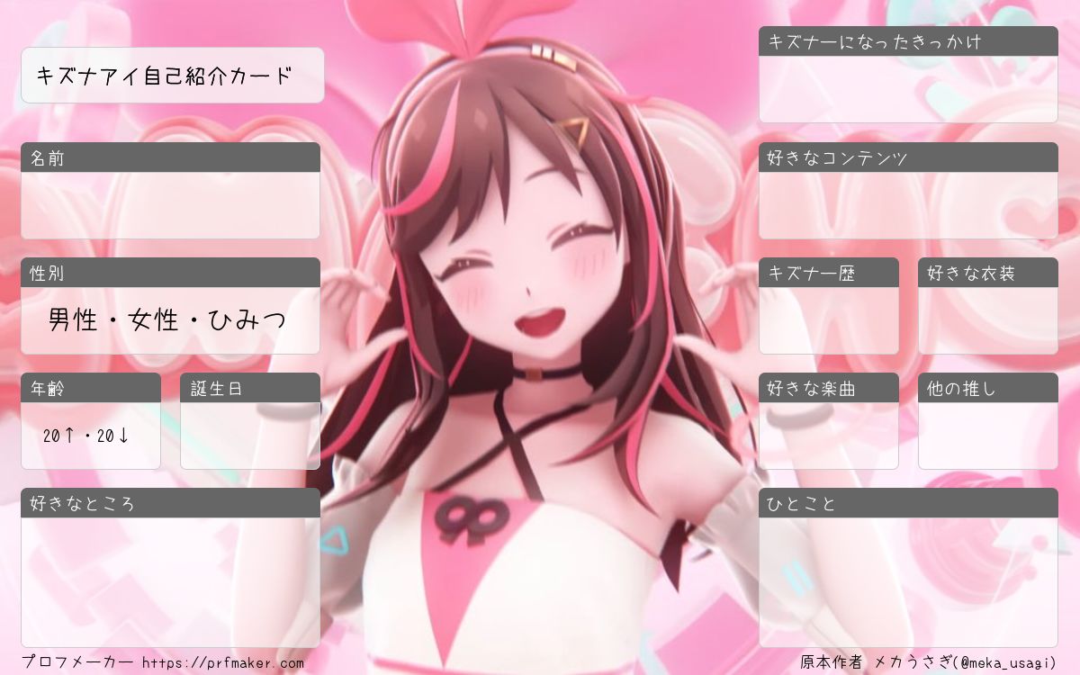 キズナアイ自己紹介カードを作る事が出来ます。