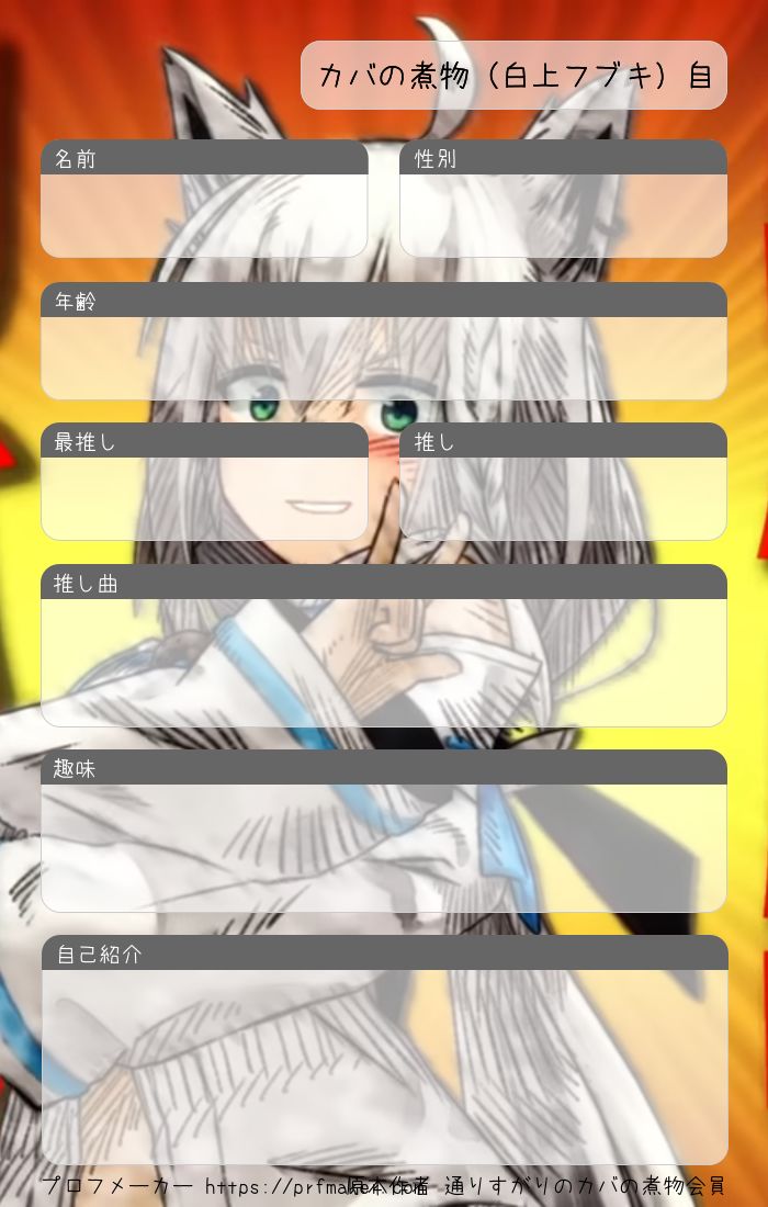 かーばっばっば! このテンプレートを使った貴方も無事にホロメンの枕カバーを煮物にして食したい会の会員だ!