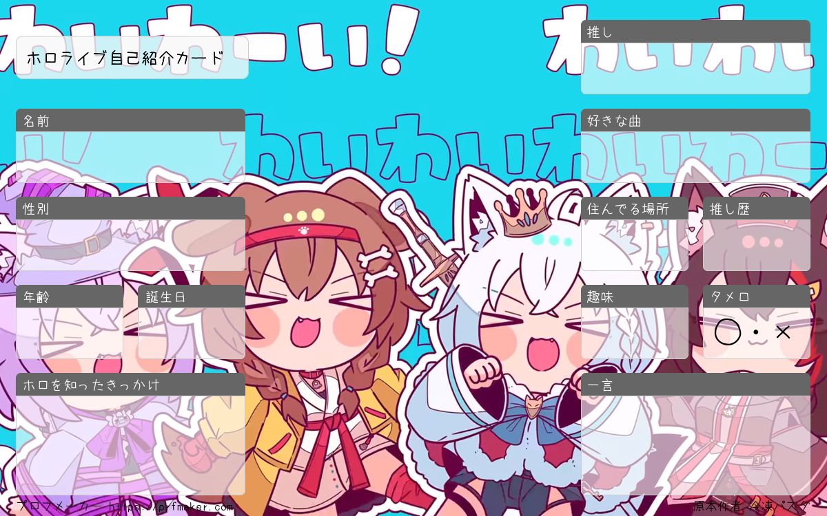 ホロライブ自己紹介カードを作る事が出来ます。