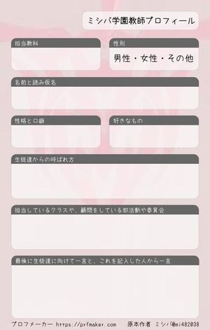 ミシバ学園教師プロフィールを作る事が出来ます。