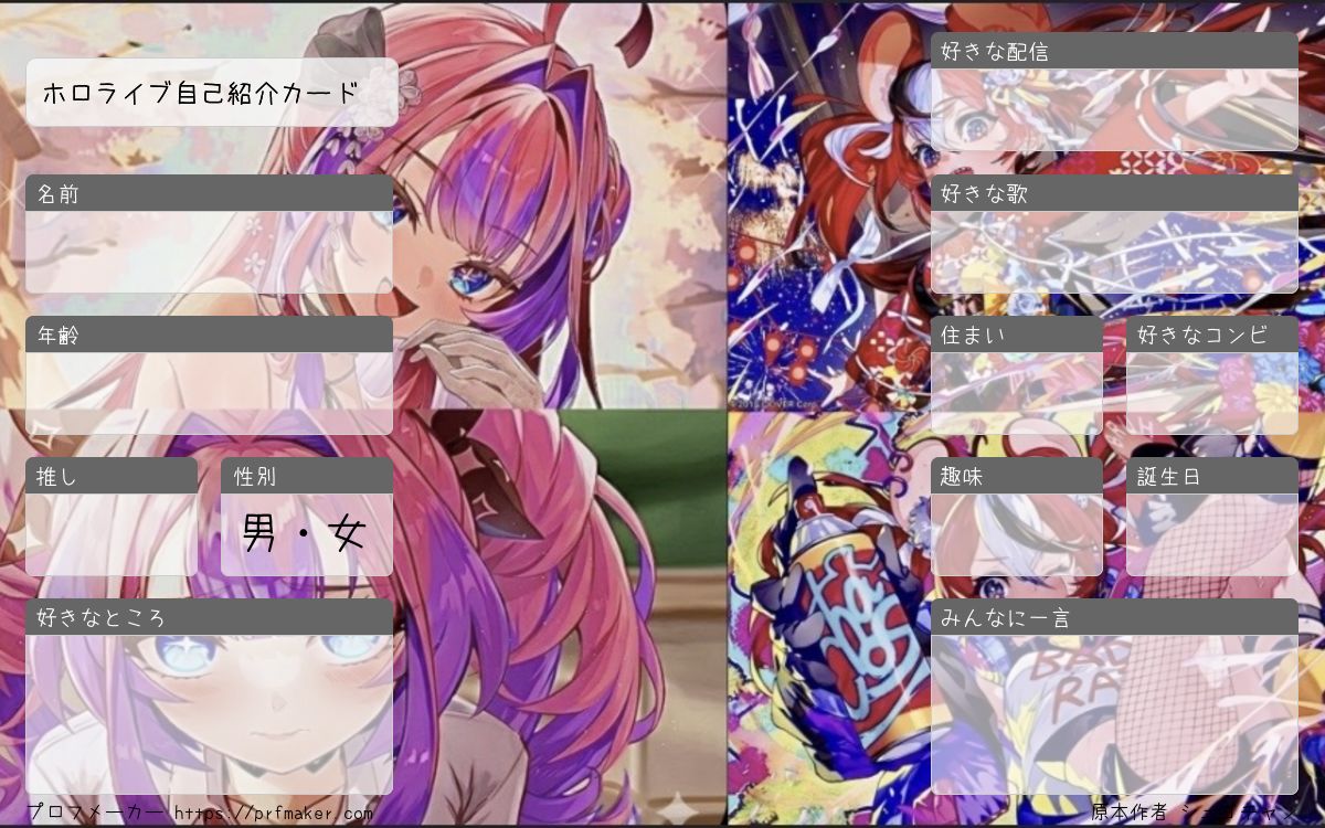 ホロライブ自己紹介カードを作る事が出来ます。
