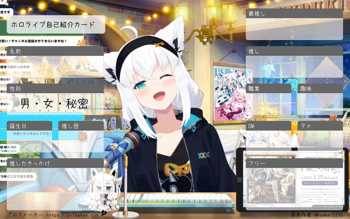 ホロライブ自己紹介カードを作る事が出来ます。