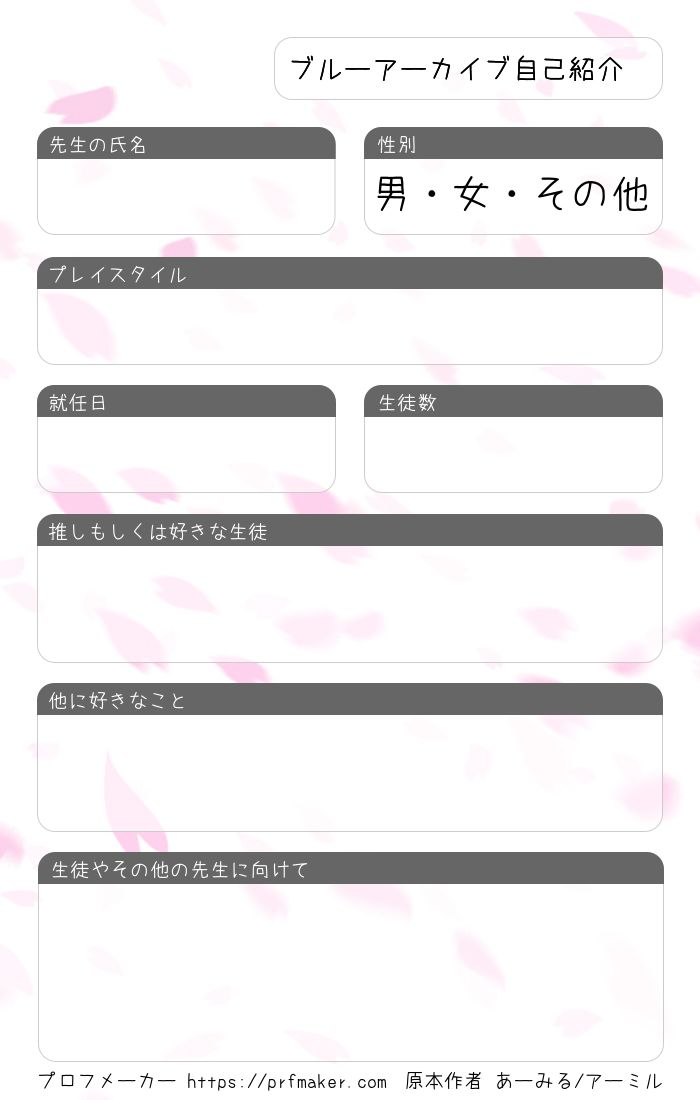 ブルーアーカイブ専用の自己紹介カード(桜仕様)