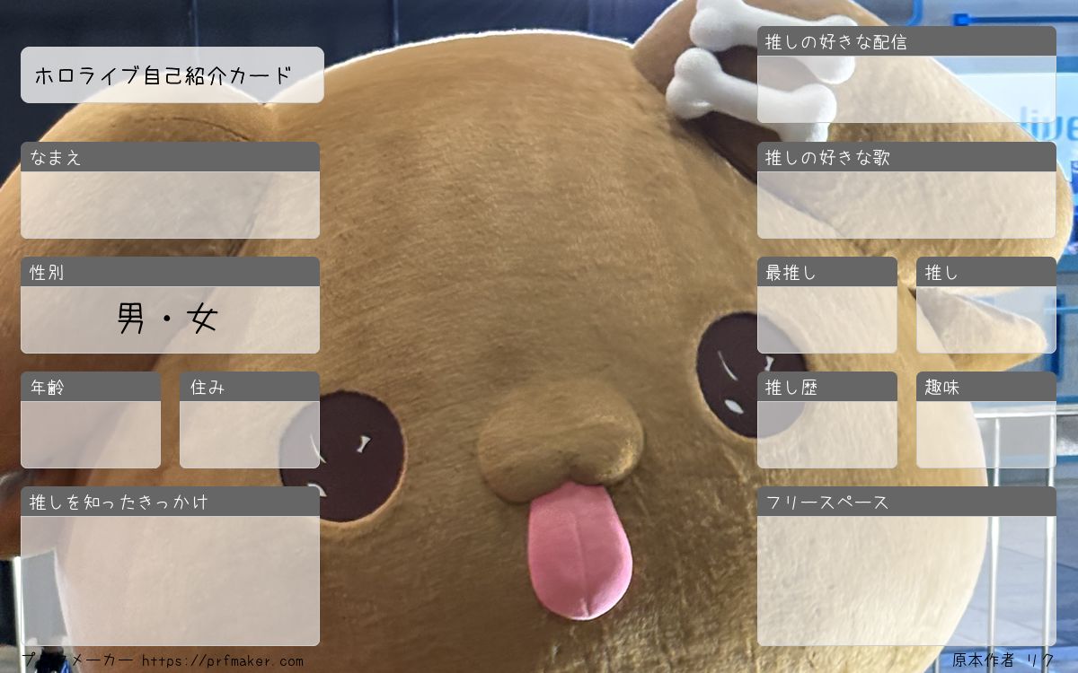 ホロライブ自己紹介カードを作る事が出来ます。